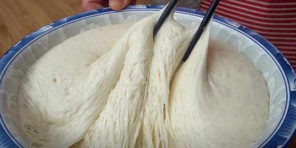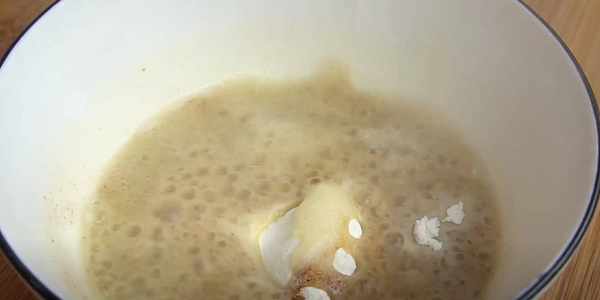 2.把它搅拌成没有干面粉的粘稠面糊。盖上盖子,让它发酵到两倍大。
