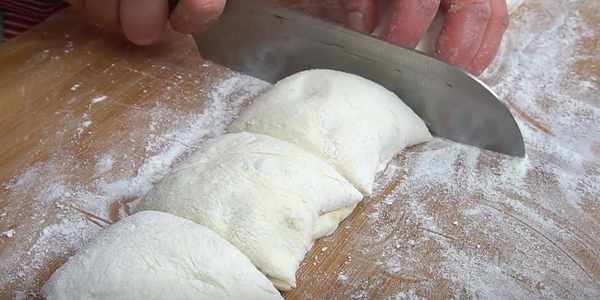 9.接着从一头把它卷起来。再切分成大小均等的面剂子。