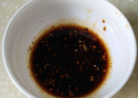 第八步,葱花切好,放在碗中,油烧至6成热,倒入,制成葱油,一个干净的小碗中,加上生抽、辣椒油、香油、醋和白糖,调成汁,与葱油,一同浇在馄饨上即可。
