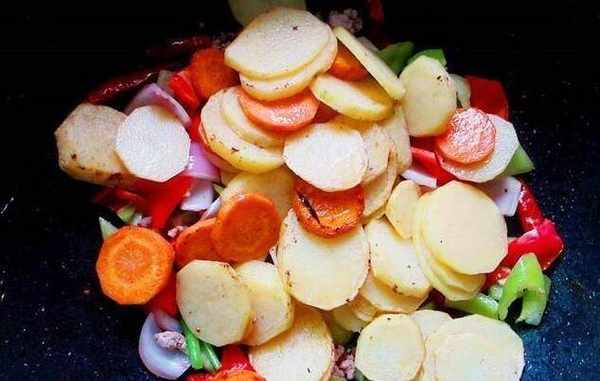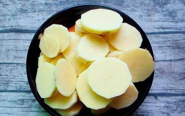 1、将土豆去皮,切成薄片,用水冲洗几次,以除去多余的淀粉,然后,胡萝卜一样去皮,切成薄片。