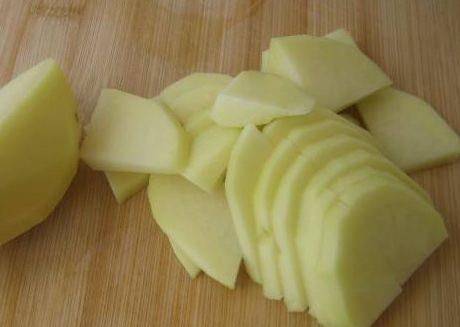 制作过程:第一步,土豆清洗干净,削去皮后,切成片,青椒去籽去蒂后,切成小块;