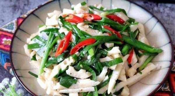 材料:莲藕一节、韭菜1把、小红椒3颗、食盐1勺