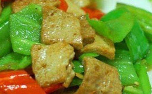 食材:豆腐干,青红椒,蒜苗,菜籽油,酱油,白糖少许,辣椒酱,盐