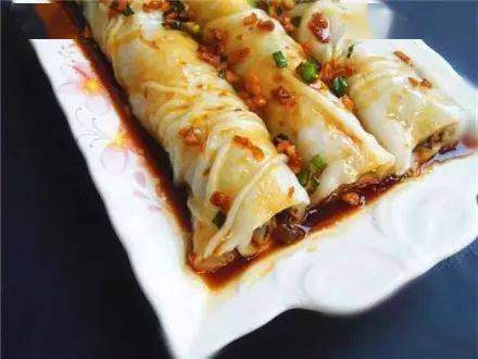 9)爆香好的酱油淋在蒸熟的肠粉上就可以