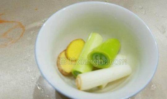 2.将姜切成片,葱切成段。