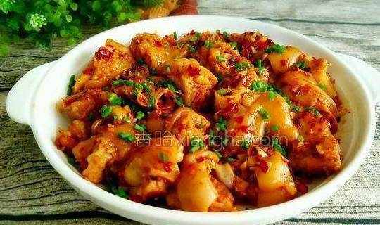 12.炒好的蒜香猪蹄盛出来,撒上葱花即可。