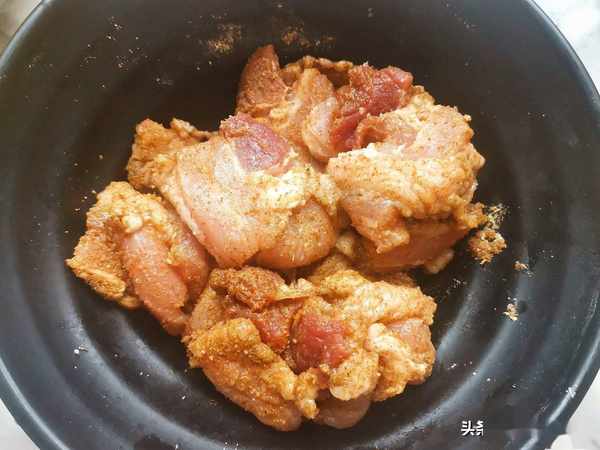 第二步:把五花肉加入烤肉料醃漬,如果中午吃,早上醃漬好蓋上保鮮膜,中午回家做就可以了。如果沒有烤肉料,可以加入蚝油,醬油,鹽,胡椒粉,辣椒粉,孜然粉,白糖拌勻醃漬,味道也是相當的不錯。