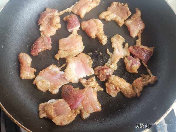 第三步:不粘鍋中小火加熱,放入醃漬好的肉片,慢慢煎烤。