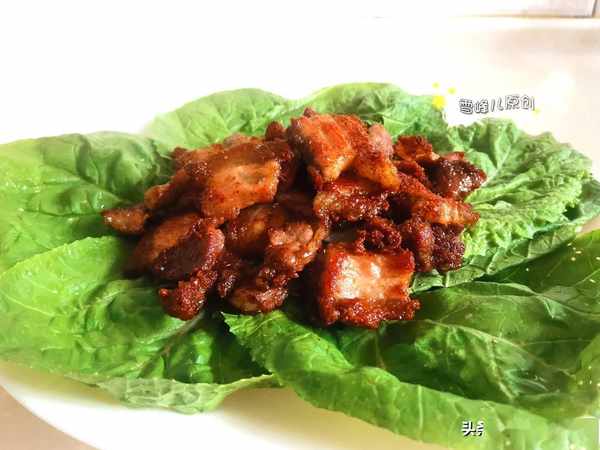 所用資料:五花肉適量,烤肉料適量,小白菜葉少許。