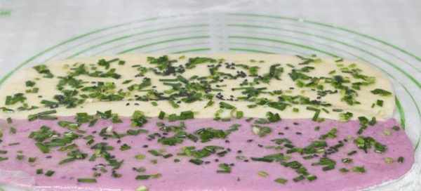 【制作食材】面粉,酵母,粉,白糖,紫薯,韭菜,食用盐,五香粉,黑芝麻