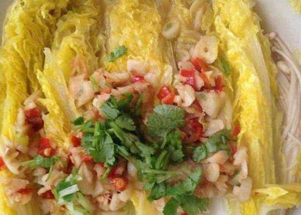 5.娃娃菜撒上蒜碎,淋上料汁即可。