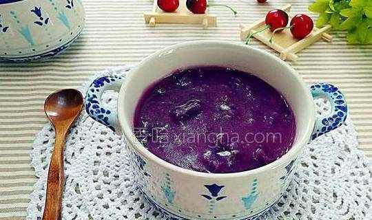 8.盛在碗里,一道快捷而又美味的银耳紫薯小甜品就做好了。