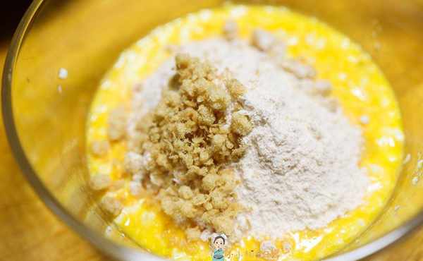 这个松饼做法特别简单,只要所有的材料混合均匀放在锅里烘烤一下就完成了。