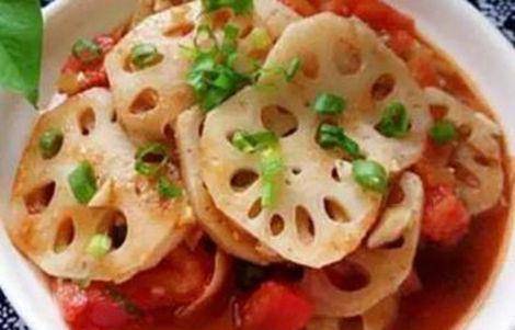 食材:莲藕、葱姜、油、番茄酱、白糖、盐、生抽