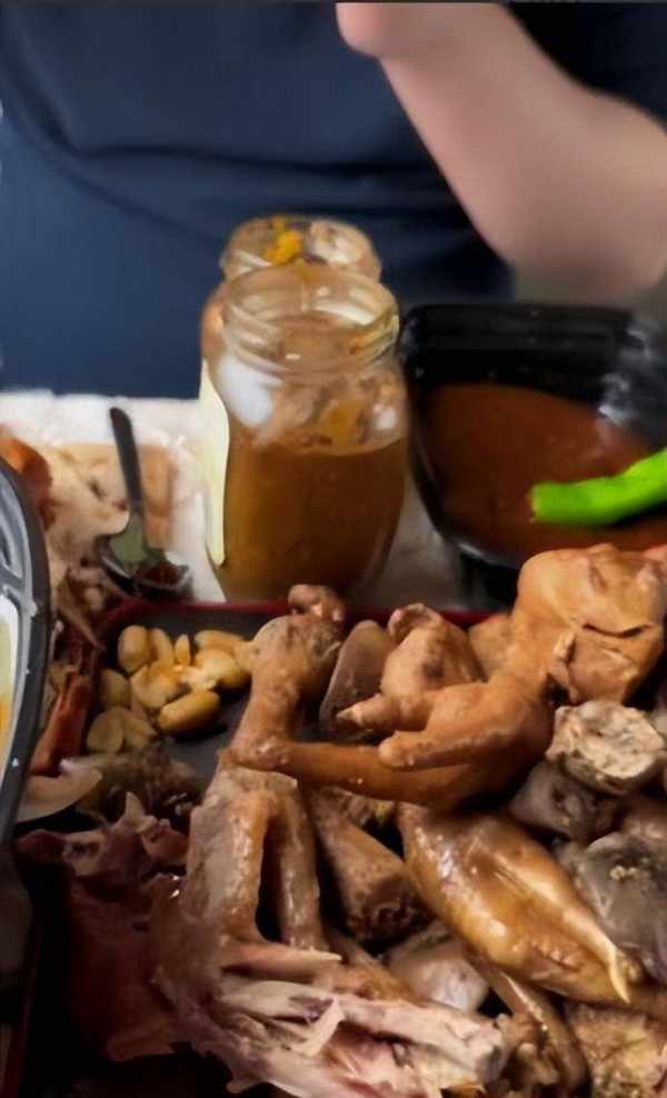 上了火车之后,三人就找了位置坐好,然后就开始聊天,开始了一路吃吃吃的旅程,一边聊天,一边吃,在车厢内,两人开始了带菜大比拼,看看谁带的菜比较“硬”,这就有意思了,在火车上比拼,而且还有很多乘客看着,就算是观众了,其中一名男子拿出猪头肉,烧鸡、咸鸭蛋,萝卜大葱辣椒等,都是家乡的硬菜啊,这些确实不错,另一人也不甘示弱,拿出蘸酱菜、干豆腐、水果和酱鸡爪等,都是很丰富的菜,确实厉害啊,看起来十分好吃。
