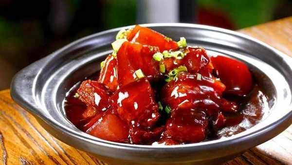 砂锅中加入白糖和油翻炒成棕红色,倒入五花肉块翻炒片刻,加入啤酒和料酒。再放入姜片、八角和耗油大火煮开,转中火焖煮50分钟。开盖,加入盐大火收浓汤汁。关火即可食用。