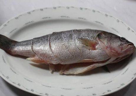 制作过程:第一步,首先将鲈鱼淘洗干净,沥干水分后,在鱼背上划几刀,再在鱼的脊背处切开,注意不要把肚皮给切断;