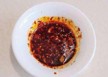 第四步,一个干净的小碗中,放上盐、生抽、醋、蒜泥、红辣椒油、白糖、香油和味精;