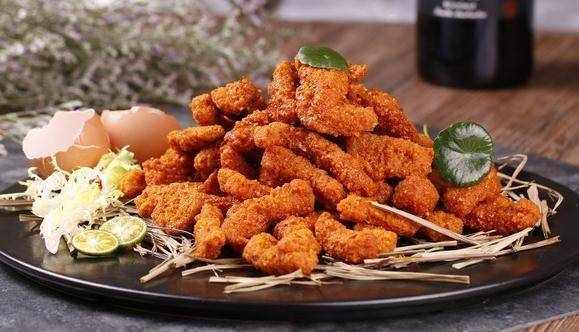 锅中烧油,油热后倒入猪肉炸至表面金黄,捞出。油继续升温至8成热,倒入猪肉复炸10秒钟。捞出控油,装入盘中即可食用。
