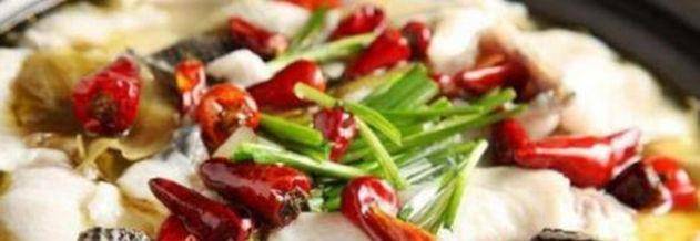 10. 鱼片一变白,立即关火,一起倒入刚才盛鱼骨酸菜的容器里,另起一锅,两到三勺油小火,凉油放入干辣椒和花椒,辣椒变得红亮出香气,把辣椒和花椒捞出放到鱼片上,葱花撒上,大火烧锅里的油,冒烟,关火,浇到花椒辣椒葱花上即可