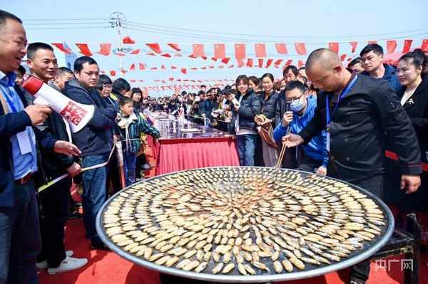 央广网宁波3月26日消息(记者 张雯雯 通讯员 蒋攀 吴帅)3月26日,以“长街味道 蛏霸天下”为主题的第十八届浙江长街蛏子节在宁波宁海县长街镇下洋涂开幕,上万只蛏子烤得滋滋作响,引得游客纷纷围聚。“鲜甜有嚼劲,好吃!”慕名而来的台胞纪明东品尝着刚出锅的长街蛏子,竖起大拇指,连连点赞。