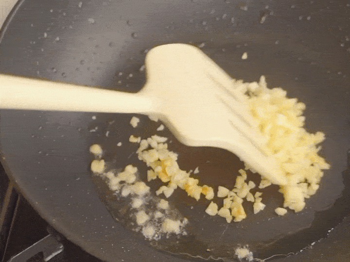 锅中留底油,加入蒜末爆香。