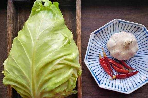 准备食材:卷心菜半颗,大蒜4瓣,干红辣椒适量,生抽一小勺,盐适量,花生油适量