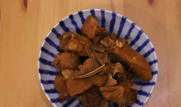 【鹵猪脊骨】量販店做活動啊,脊骨28元1斤,買了一斤多回來,用溫水泡一兩個小時,清洗乾淨淤血和雜質,薑片、八角、桂皮、花椒用油煸香,脊骨請入鍋炒香,加水煮開,生抽、醬油、蚝油調味,小火慢慢鹵煮1個小時,關火浸泡一個小時,鹵脊骨這種油脂比較少的肉類,加一塊肥猪肉會讓脊骨口感更好,吃起來不柴。