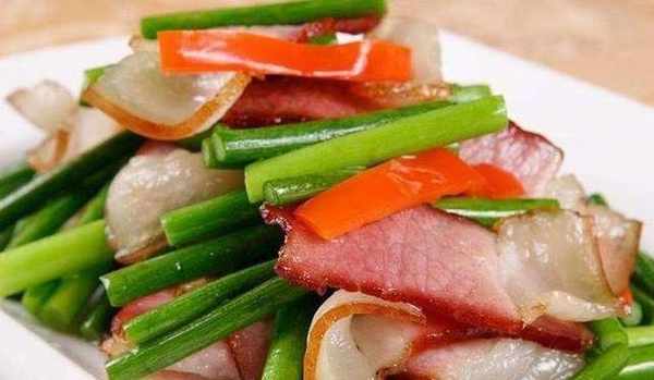 做法:把蒜苗洗净切成斜段,腊肉去皮切成薄片备用。姜裘皮洗净切片,葱去根洗净切成斜片备用。