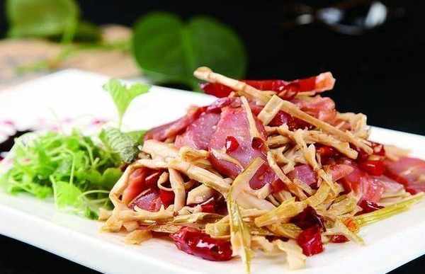 做法:把豇豆干放在水中,浸泡1天。锅中烧水,加入盐。大火煮开,下入泡好粉豇豆焯水1分钟,捞出控水备用。