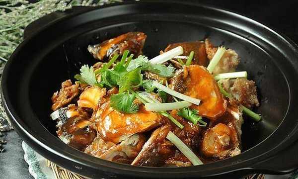 锅中留油,油热后倒入葱姜蒜翻炒出香味,再加入炸好的鱼头翻炒片即可,倒入调好的料汁翻炒均匀。
