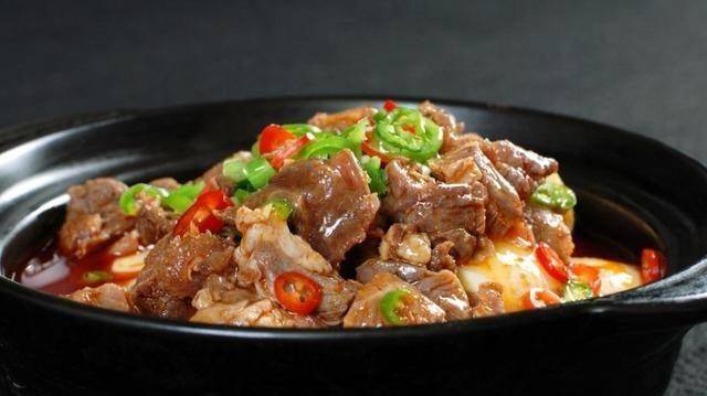图搜去皮洗净切成块,清洗干净表面的淀粉,备用。锅中烧油,油热后倒入姜蒜翻炒出香味。下入豆瓣酱翻炒出红油,加入牛腩块翻炒均匀。再加入所有香料翻炒出香味。