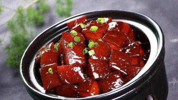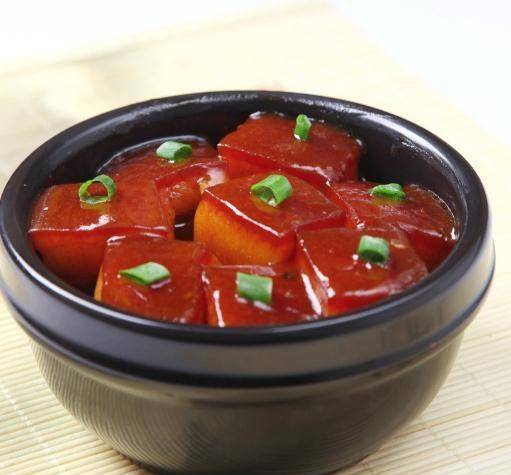 葱洗净切成段、姜切成片。铺在锅底,把五花肉皮朝下,加入花雕酒,加入生抽、老抽,放入白砂糖再加入清水大火煮开,转中火焖炖2个小时。关火,出锅装盘即可食用。