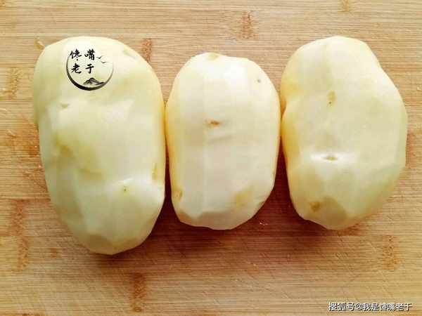 步骤一:首先,准备3个土豆,用削皮器去皮后洗净,接着再切成粗细一致的长条备用。注意:土豆一定要选择没有长芽的,一是长芽的土豆有毒,二是口感会苦涩难吃。