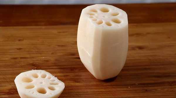 2、 用水将莲藕清洗干净,切去两头,将表面的莲藕皮削去;