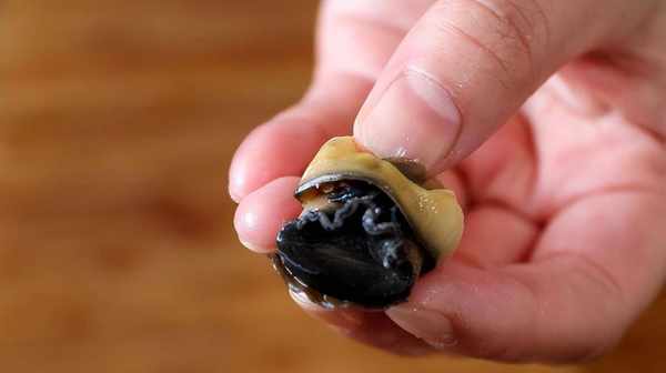 3、 用牙签跳出里面的螺肉,后面的籽可以去掉;