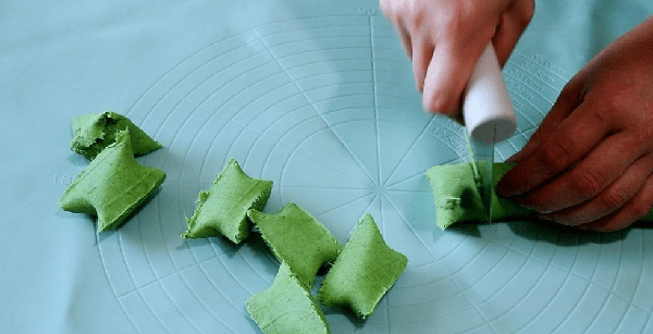 7、 将面团搓成一个长条形,分成相等的小剂子;