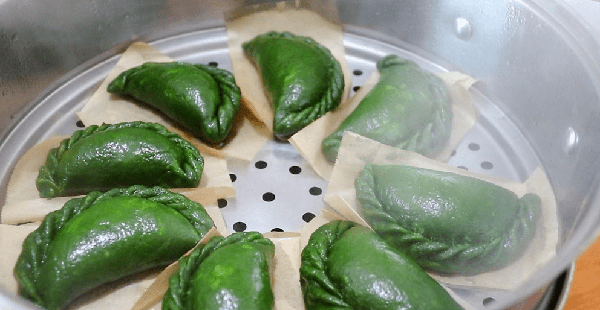 9、 锅中加入适量的水,水开将包好的清明果放在锅上蒸熟即可。