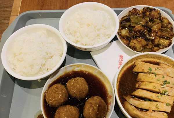 怎麼可能呢?30年了,女兒從3歲開始吃到讀高中的菜品:燒茄子、豉汁排骨、四喜丸子;那種兒時的記憶,曾經的美味,那麼多的連鎖店居然全部結束了!我們驚愕和遺憾過後决定今天就吃都市快車的速食了,於是叫了燒茄子、燒豆角、紅燒牛肉、四喜丸子、豉汁排骨等以前常吃的菜肴……配上大米飯,我們一家三口飽餐了一頓。