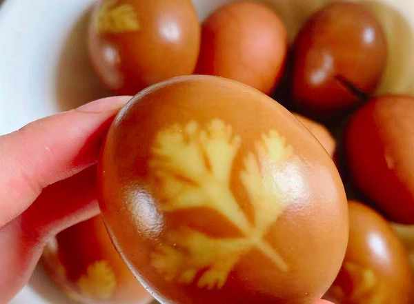清明蛋的做法:水煮鸡蛋或者是做成卤蛋都行,也可以把煮好的鸡蛋去壳,用放上艾叶用纱布包裹好,放入卤料汁里卤煮,这样做出来的卤蛋就有艾草花纹会比较好看。
