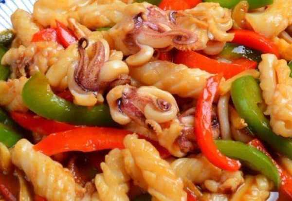 准备食材:鱿鱼,青红椒,姜丝,蒜苗,酱汁。