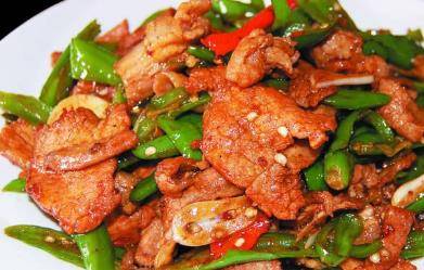 小炒肉一般选用肉质比较细美的猪肉,最好是''隔纱''五花肉,用青椒、豆豉爆炒,中间加入香喷喷的油渣。