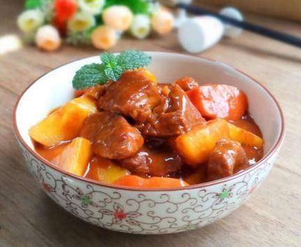 再加入清水大火煮开,放入炖牛肉料包和盐。转中小火焖煮2个小时。土豆去皮洗净切成块,胡萝卜洗净切成块。开盖,倒入土豆和胡萝卜块盖上锅盖焖煮30分钟。开盖,大火收浓汤汁,放入香菜搅拌均匀。关火装盘即可食用。