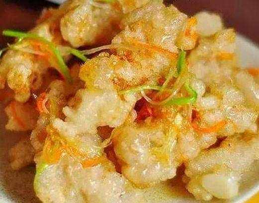 材料:虾5只、面粉150克、薯粉50克、胡椒粉少许、蛋1个、盐1根、水1根、葱1根。