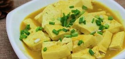 5,把豆腐加进来,中火焖煮6,待汤汁变的浓稠,就可以撒盐撒小葱出锅了,咖喱本身有咸味,加盐的时候尝一下味道,不要加多。自己做这道菜也可以加些胡萝卜粒豌豆粒进来,点缀下颜色,咖喱味道浓郁,许多小朋友都会喜欢。