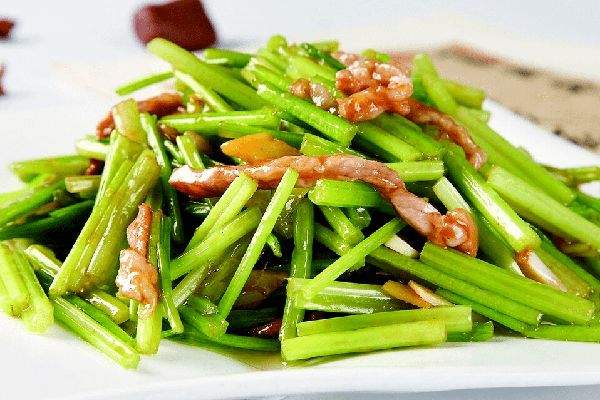 材料:芹菜、猪肉、葱姜、盐、鸡精、生抽、蚝油、淀粉、料酒