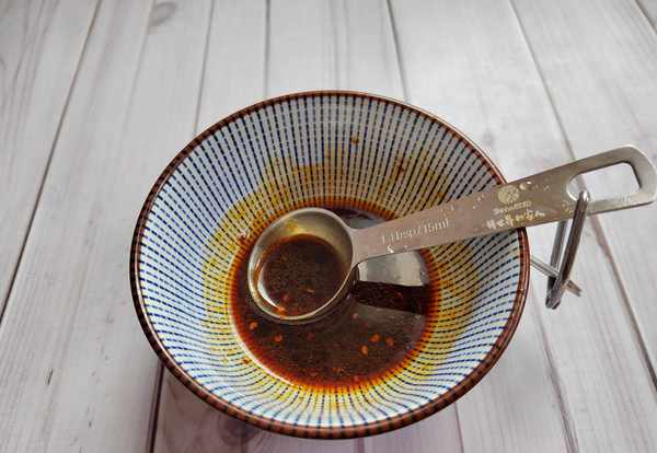 配料:盐3克;十三香1克;花生油20克;白糖3克;辣椒酱半勺;米醋半勺;生抽1勺。