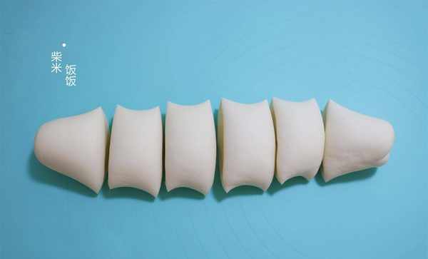 6,将醒好的面团揉光,搓成长条,再分成6等份。