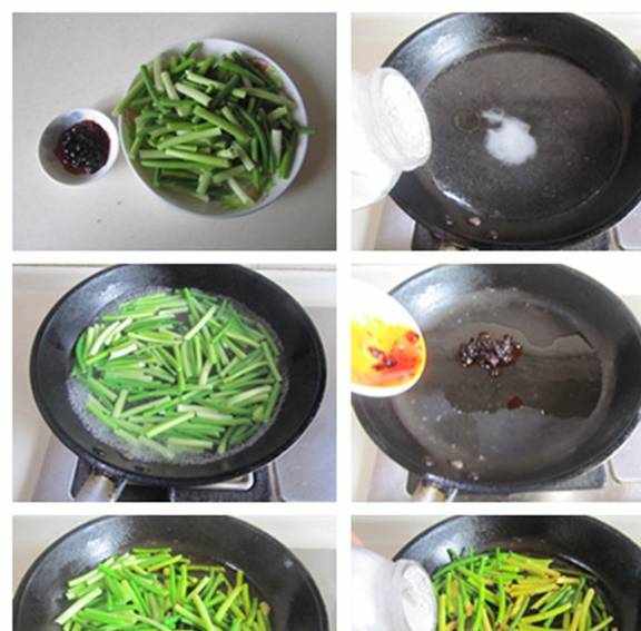 原料:蒜薹1盘香辣豆豉酱1勺油盐