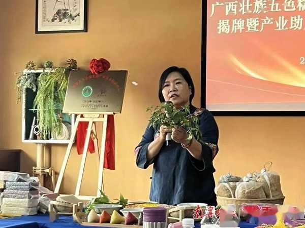 2010年,由南宁市武鸣县申报的“壮族五色糯米饭制作技艺”入选广西壮族自治区级非物质文化遗产代表性项目保护名录。作为该项目的代表性传承人,今年58岁的潘红华长期致力于传承发展五色糯米饭制作技艺,并通过打造非遗基地、开展非遗研学活动、研发生产系列产品 、培养年轻传承人等方式,为传统美食注入新意。